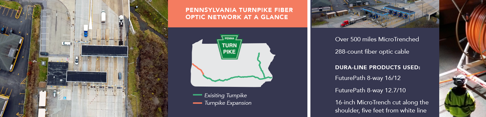 Since 2003, the Pennsylvania Turnpike Commission (PTC) has been working to transform the Turnpike into a fully connected Integrated Transport System (ITS) in response to the rapidly increasing need for greater connectivity among their communications. Where in the past, leased lines and microwave towers were adequate, now a 14% average annual bandwidth growth, 24% average annual increase in connected devices, and 212% average annual increase in storage demands meant that the PTC would need its own fiber optic network—both to meet this growing demand and to adopt advancements in transport technology, like all-electric tolling and autonomous vehicles.