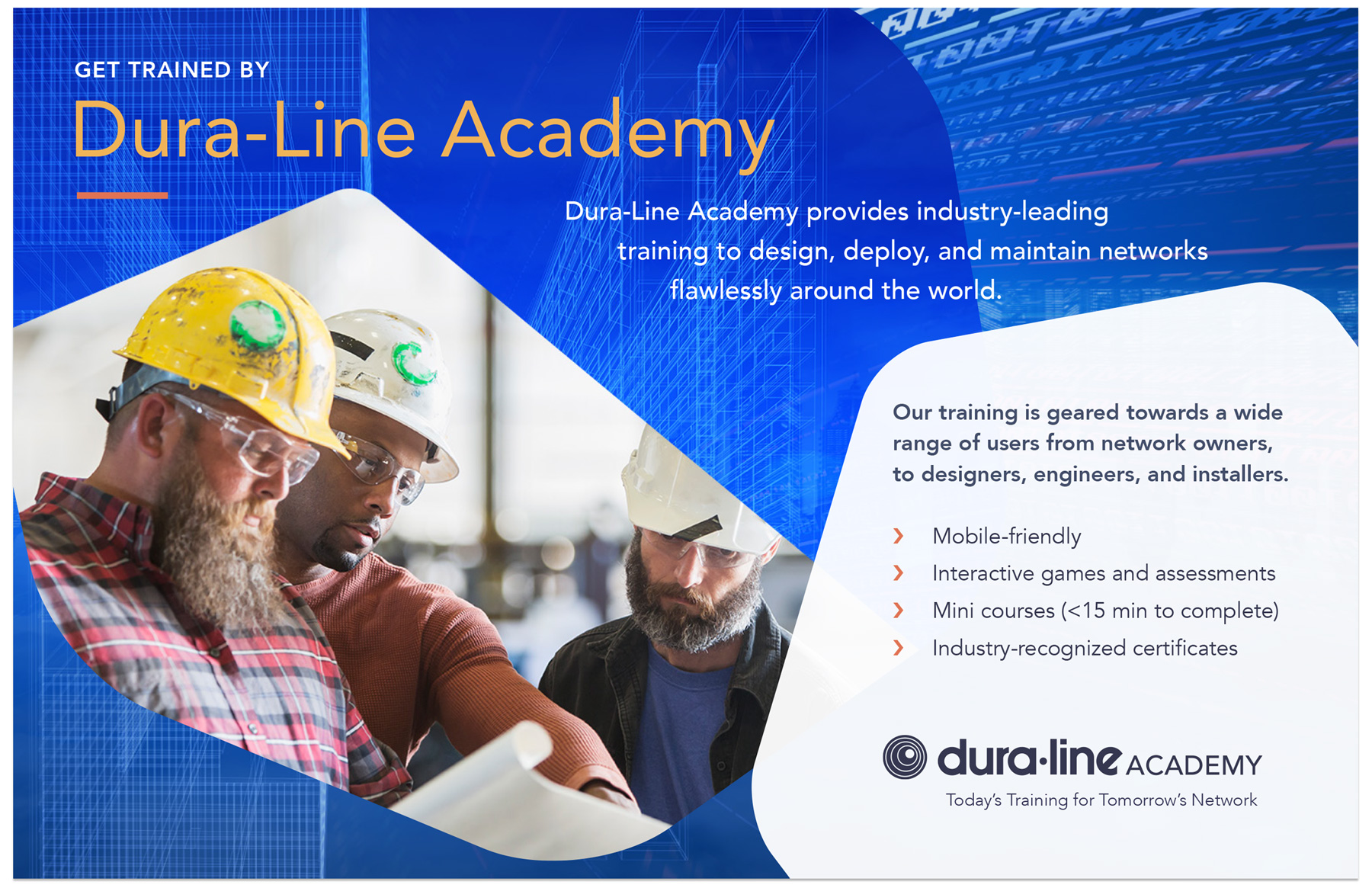 At Dura-Line, we’ve long recognized these blind spots in the existing body of training content available for telecommunications workers. That’s why we created Dura-Line Academy – to ensure you and your workforce get the industry-leading education you need to design, deploy and maintain networks flawlessly around the world.