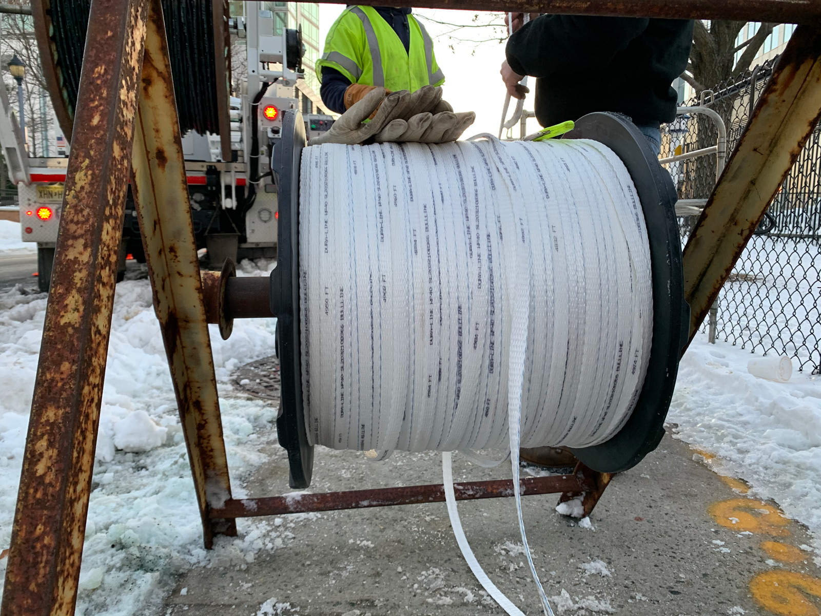 Often, one contractor will be responsible for installing the pathway and inserting the pull tape, ready for another contractor to pull in the fiber or power cable later. Conduit with pre-installed pull tape enables one-step installation for faster, more cost-effective projects. With the duct in place, all the installer must do is tie the individual lengths of tape using a quality knotting method like Dura-Line’s Bull-Knot for maximum strength retention, then couple the conduit.