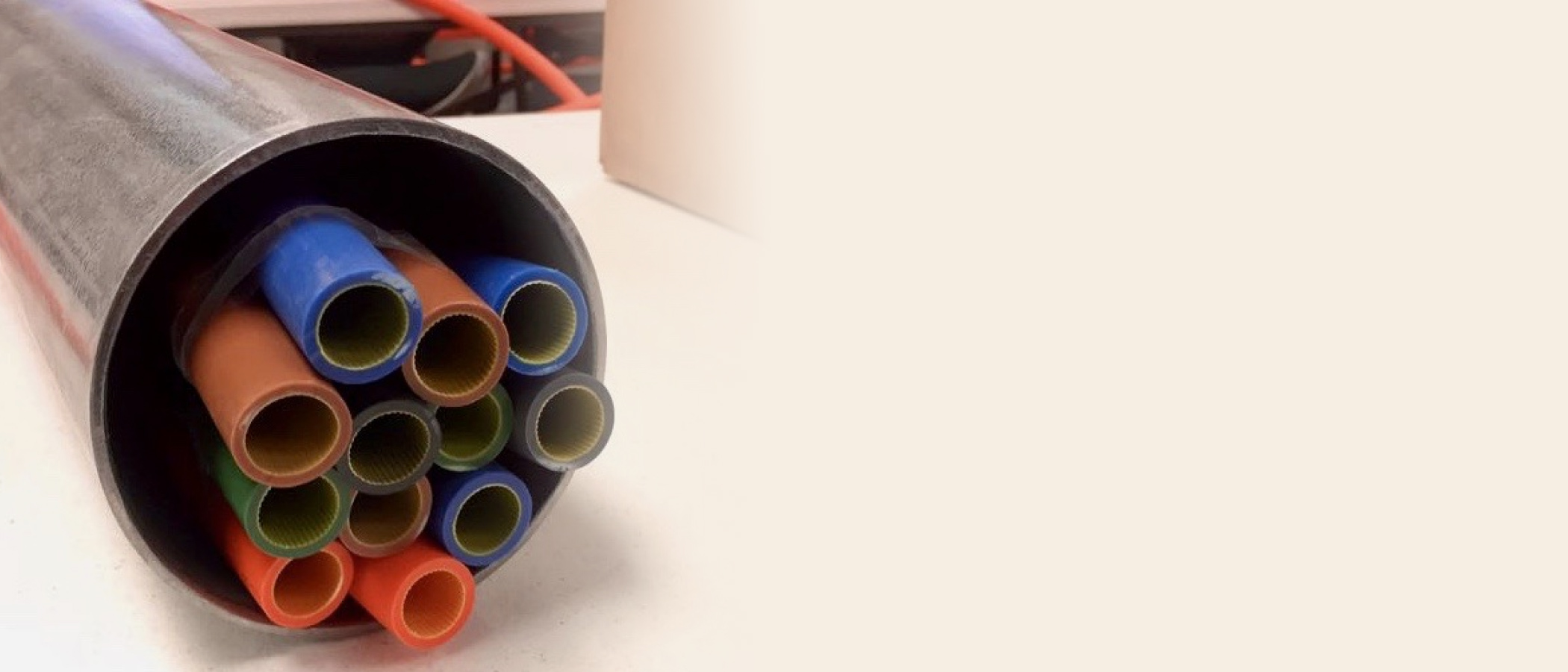 For subdividing HDPE conduits (typically 1” to 2” ID), individual MicroDucts can be pulled in or air jetted (air-assist pushed) into the empty duct. Use proper pulling or jetting lubricants for better installation results.