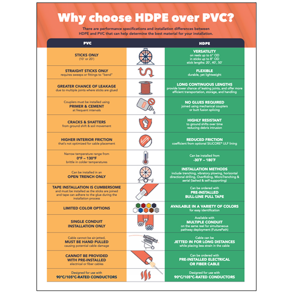 There are performance specifications and installation differences between HDPE and PVC that can help determine the best material for your installation.
