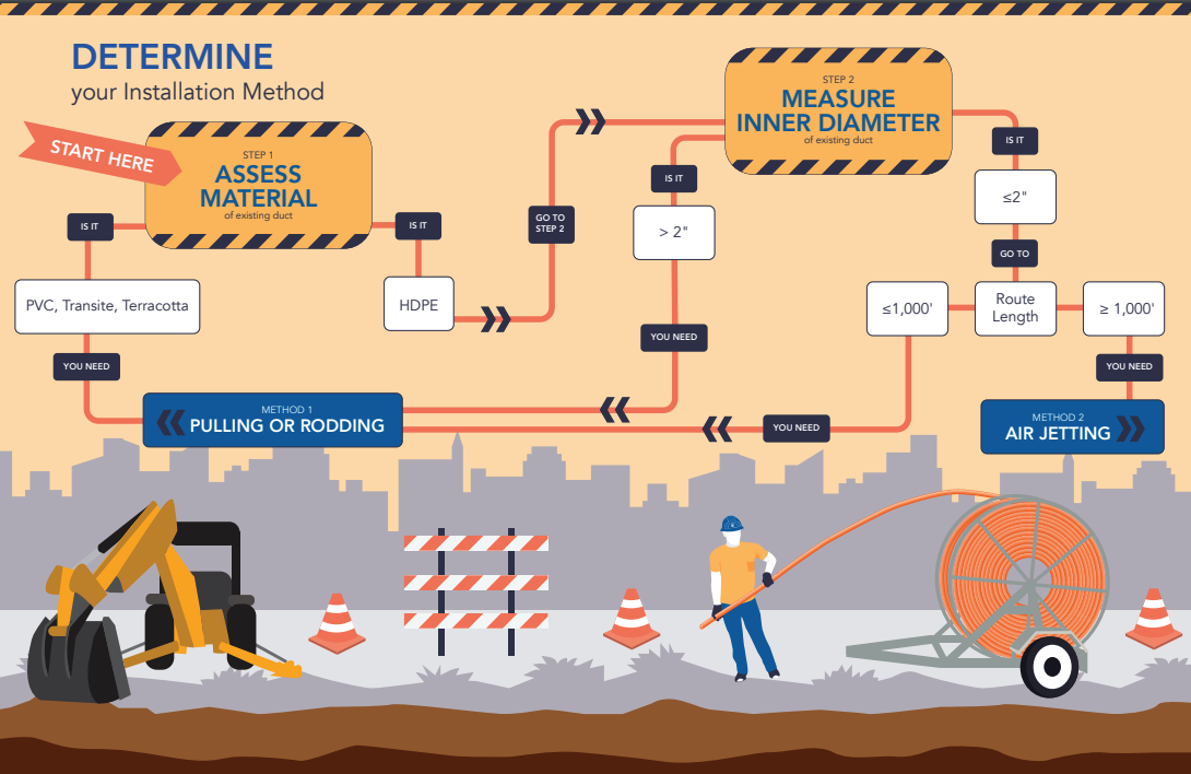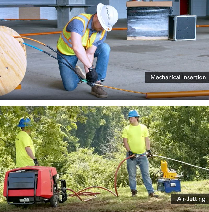 - Air-Jetting: uses a Y-block to isolate the existing cable and high-speed air to install the MicroDucts.