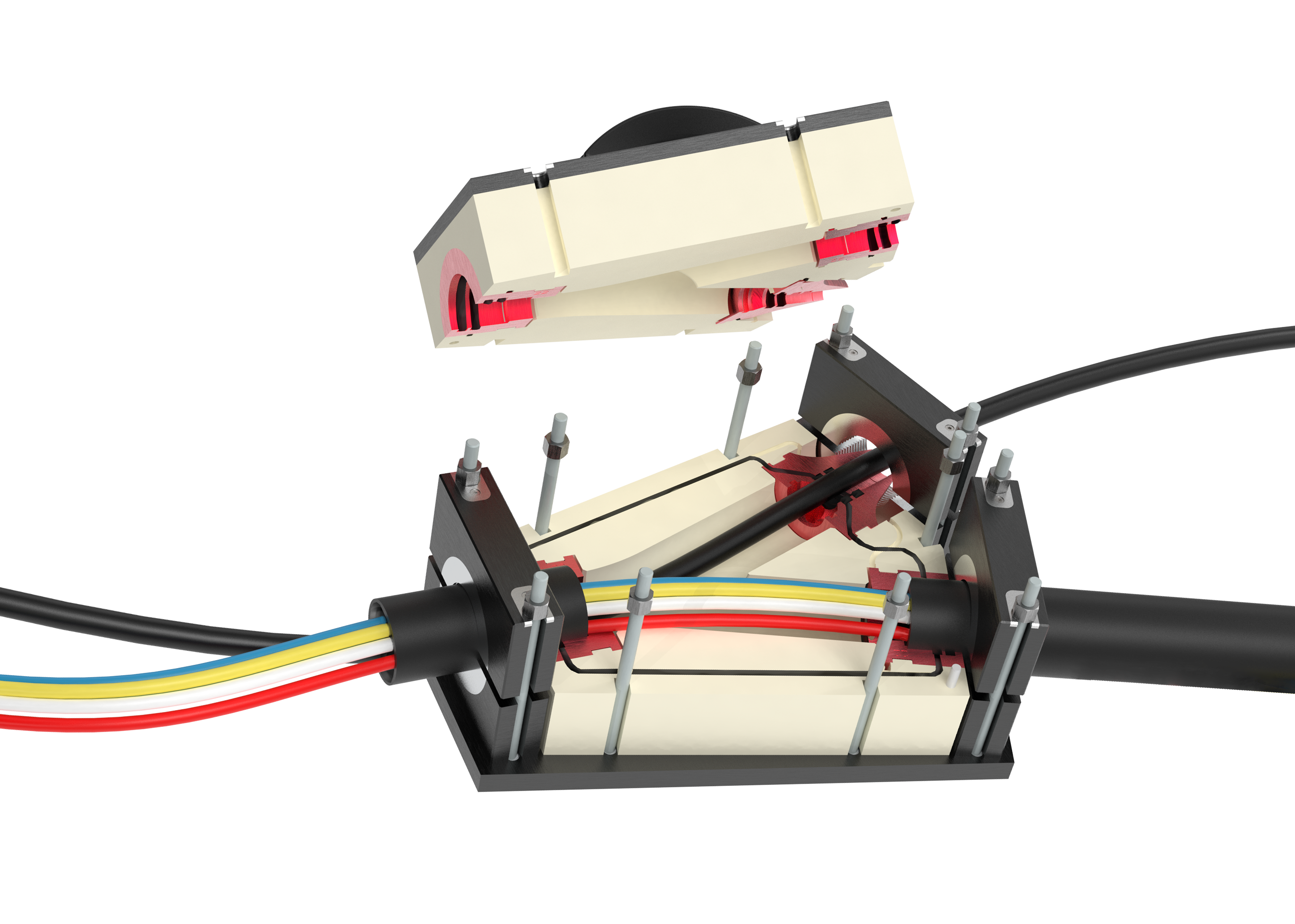 A Y-block isolates an existing cable so a conduit can be pressurized for jetting. The Y-block sits between the jetting machine and entrance to the existing conduit and all apparatus is divisible so that it can be installed around the existing cable. Always check you’re using appropriately sized seals for your conduit and cable.