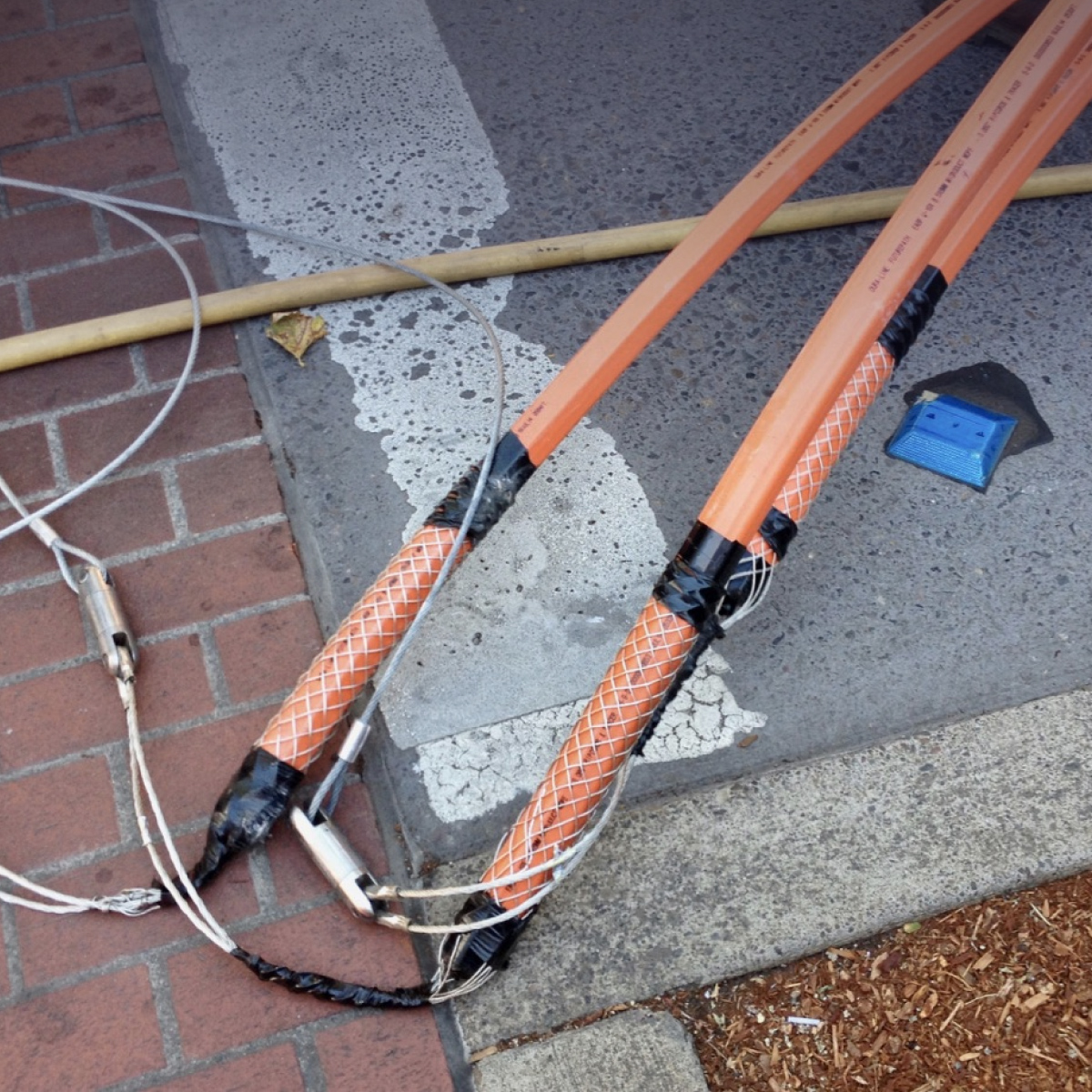 It is essential to use the proper pulling hardware and not to exceed the maximum tensile pull rating of the ducts being placed. The use of swivels – attached to each duct and the lead pull line – and staggered wire rope slings (bridles) are necessary to allow maximum pulling clearance in the conduit and reduce or eliminate twisting of the multiple ducts during placement. Either threaded pulling eyes or wire mesh grips are attached to the duct(s). When placing different size ducts simultaneously, the pull tension maximum is limited to the duct with lowest published pull tension maximum.